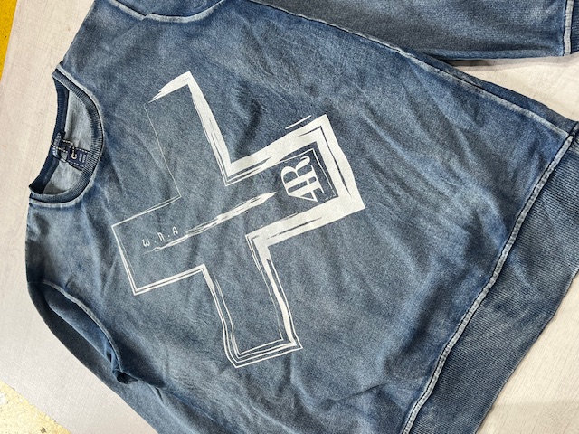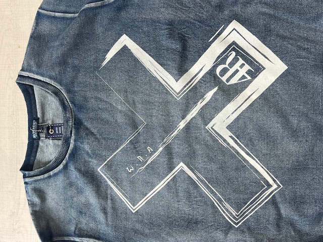 インディゴカットデニムのクルーネックトレーナー