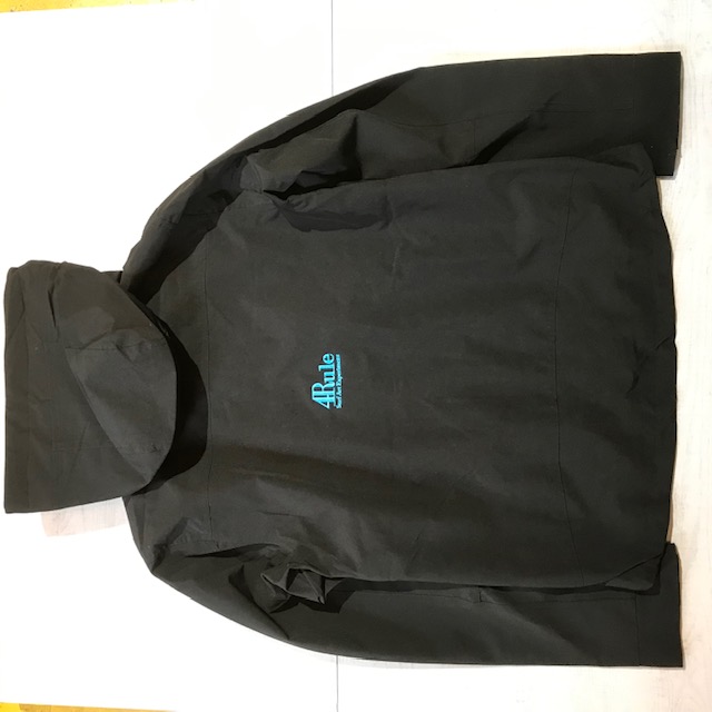 4Rule 撥水加工ストレッチ ハイスペック マウンテンパーカー 3D立体刺繍:SAXBLUEバック